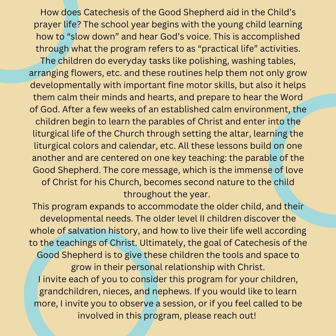 We are offering CGS in two locations for the 2024/2025 faith formation year.